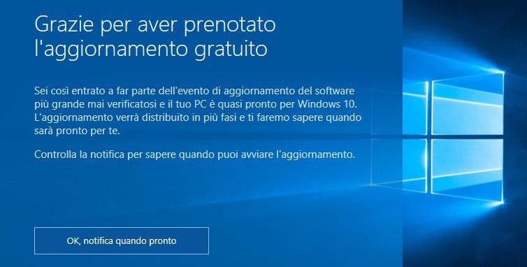 L'aggiornamento può essere portato a termine dopo aver effettuato la prenotazione che permette di scaricare i file necessari all'installazione (come anticipato nelle scorse ore molti utenti hanno già iniziato a riceverli).